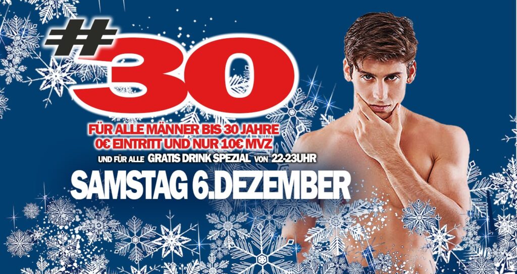 Our legendary #30 Party draws young men to the XL-Sauna! Every first Saturday of the month, men under 30 are the center of attention. 💸